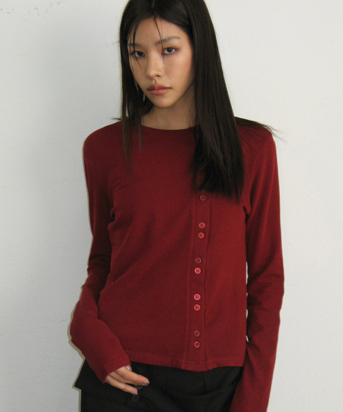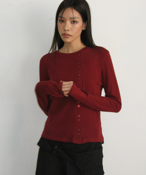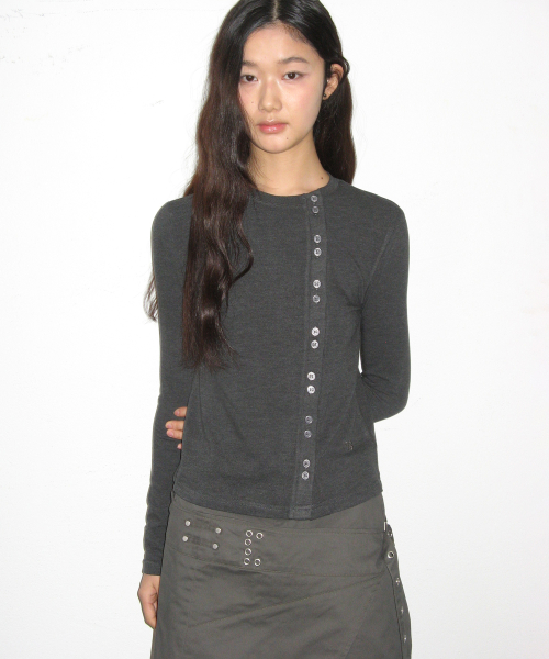 사선 인시전 아일렛 포인트 링스냅 롱슬리브 긴팔 티셔츠_3COLOR