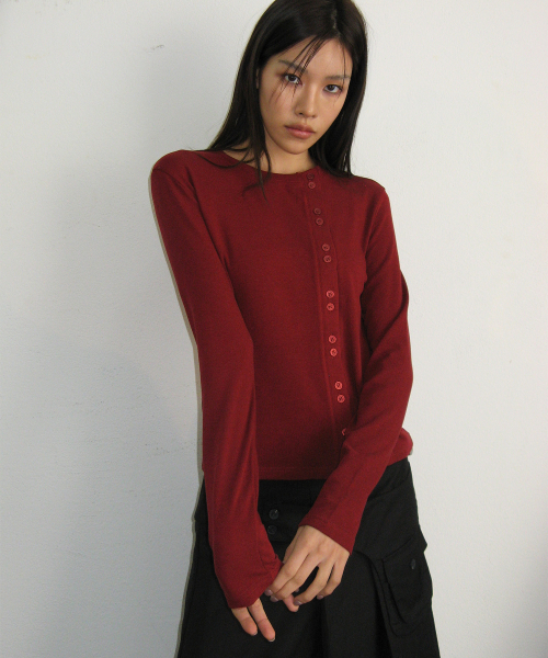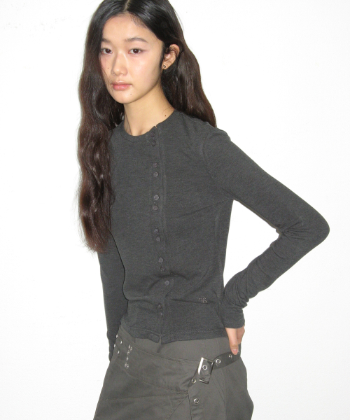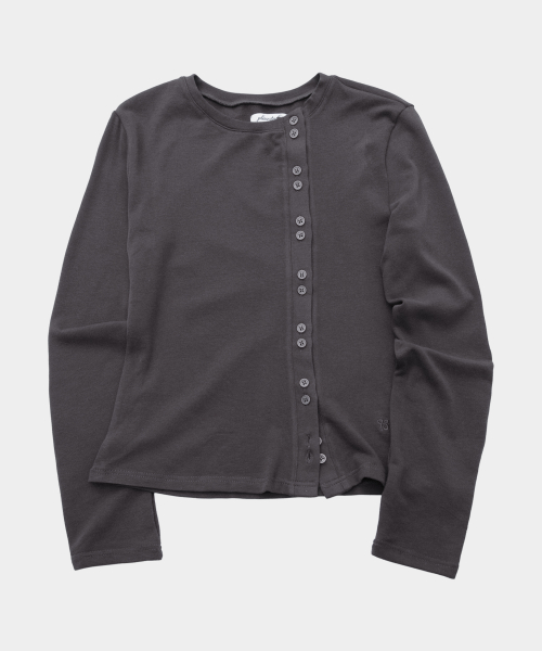 올데이 미니 더블 버튼업 포인트 롱슬리브 슬림 베이직 가디건_2COLOR