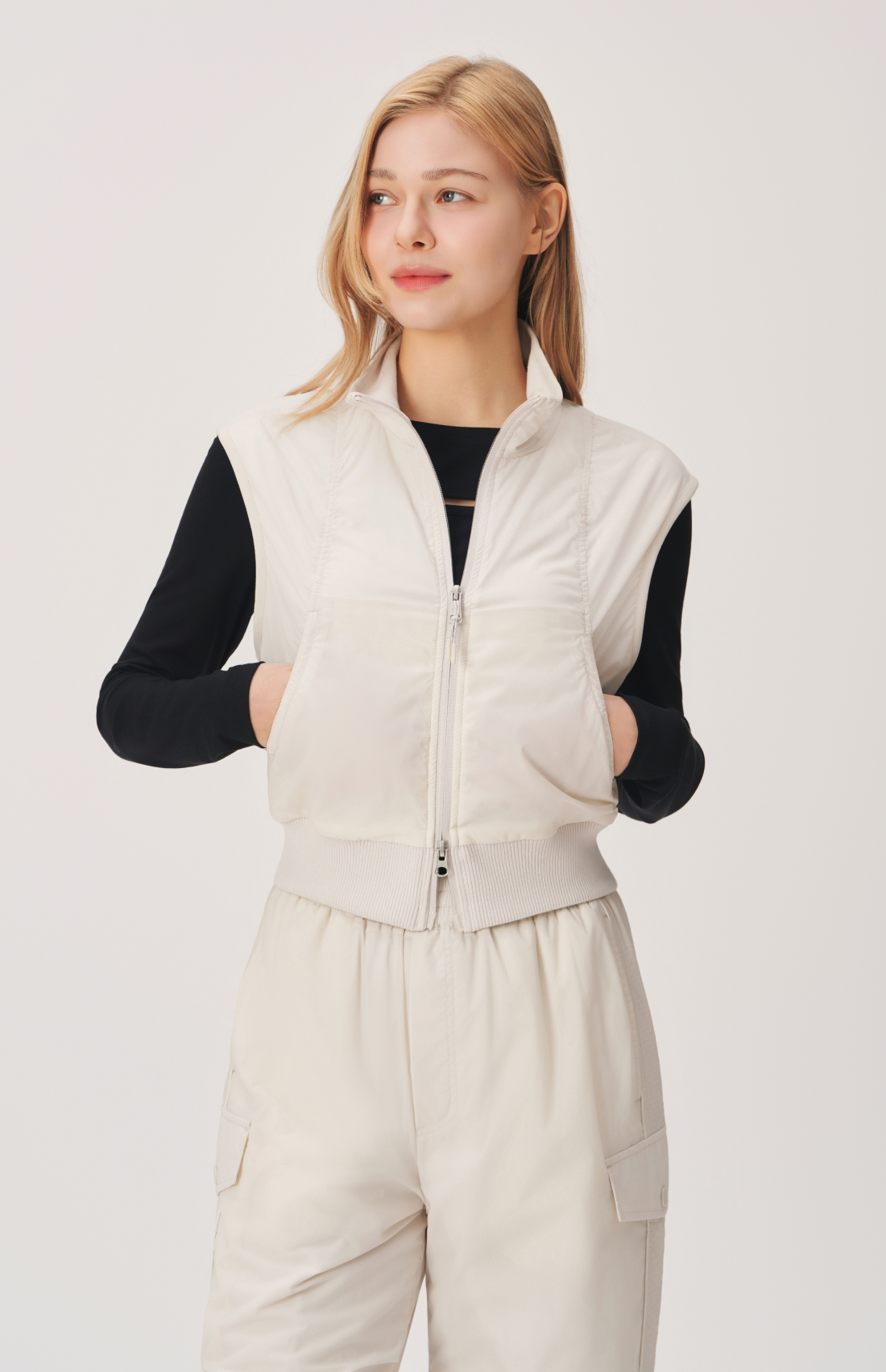 IN-FLEECE LIGHT CROPPED VEST JACKET