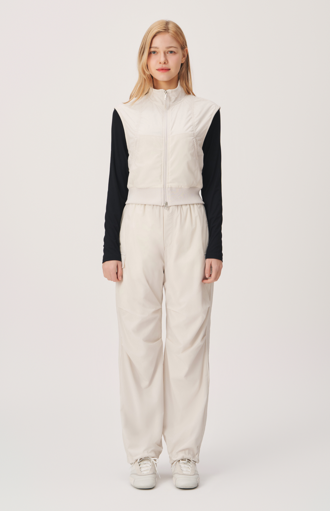 - 허리선을 살짝 덮는 크롭한 기장감