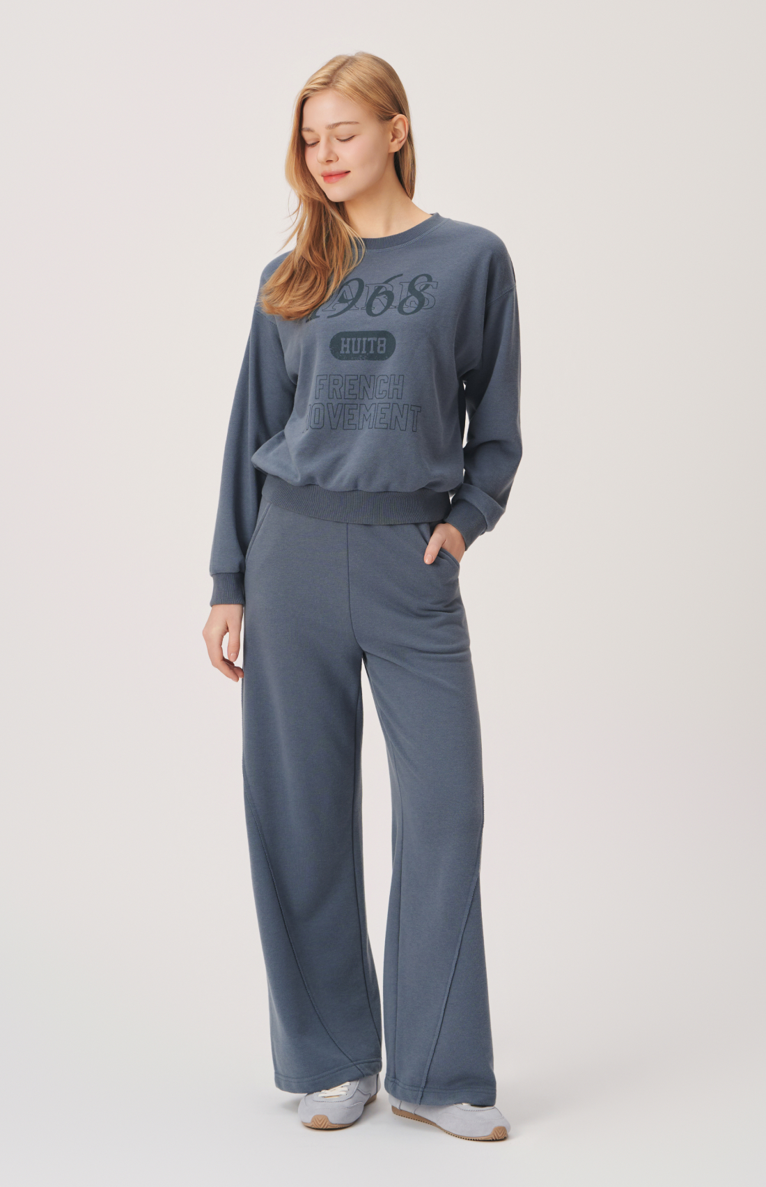- 같은 소재의 맨투맨과 셋업 연출 가능