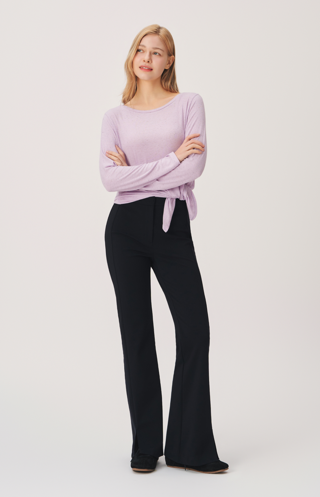 BRUSHED FRONT-SLIT BOOTCUT PANTS