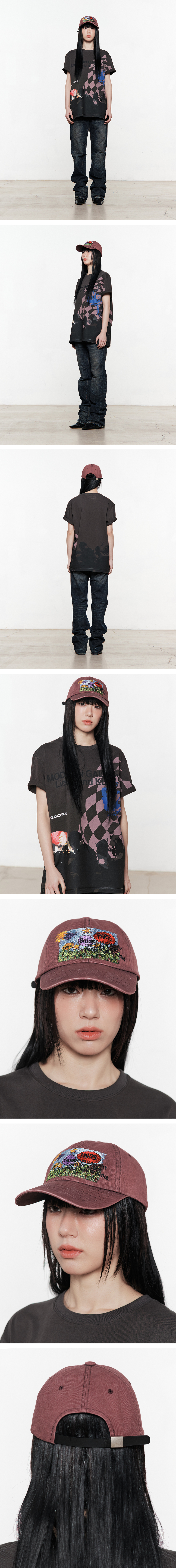ART FLOWER LEATHER STRAP BALL CAP (WINE)