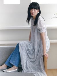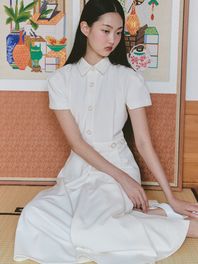 메쉬 셔링 도트 원피스_화이트