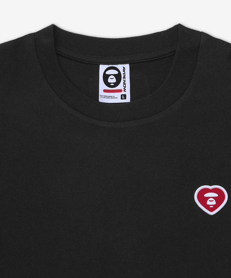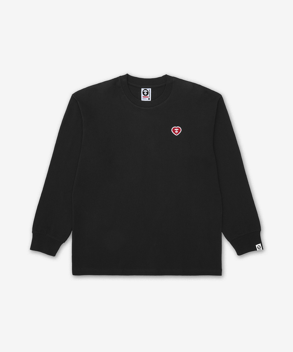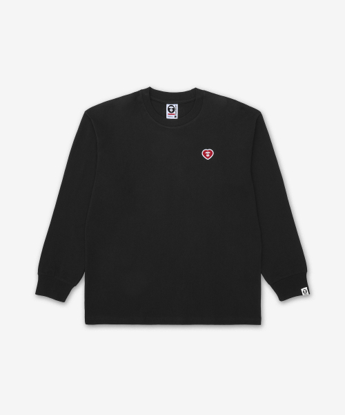 문페이스 하트 스몰 로고 긴팔 티셔츠 - 블랙 / AAPLTM1815XXQBKX