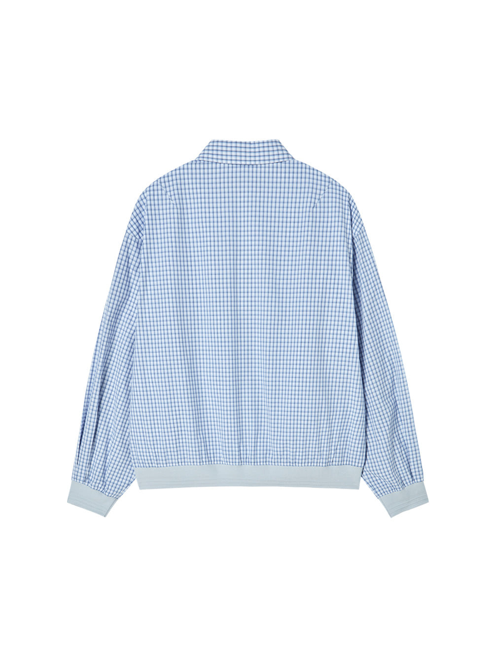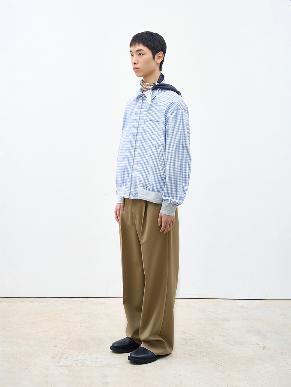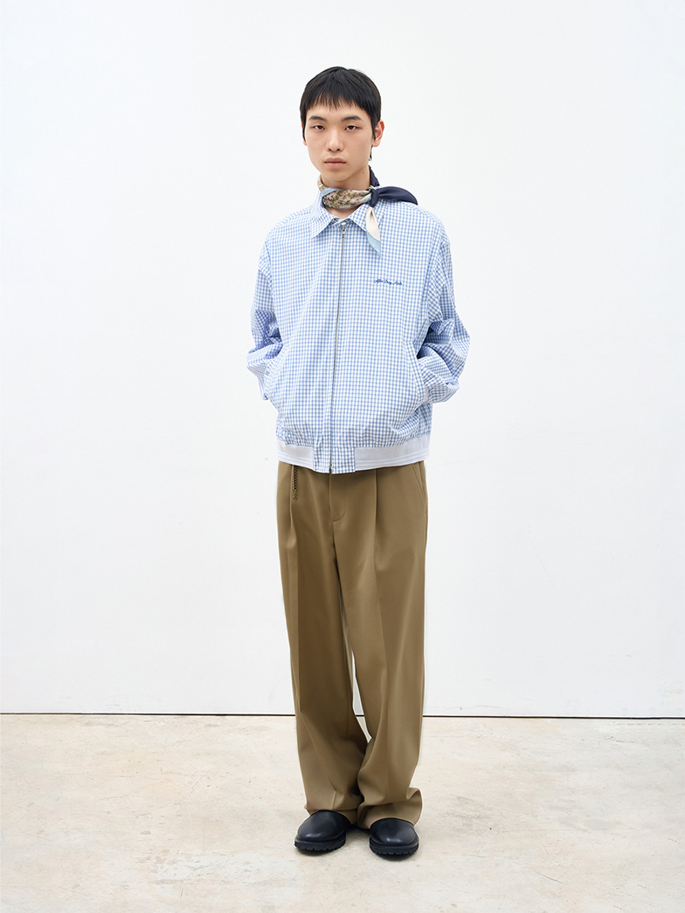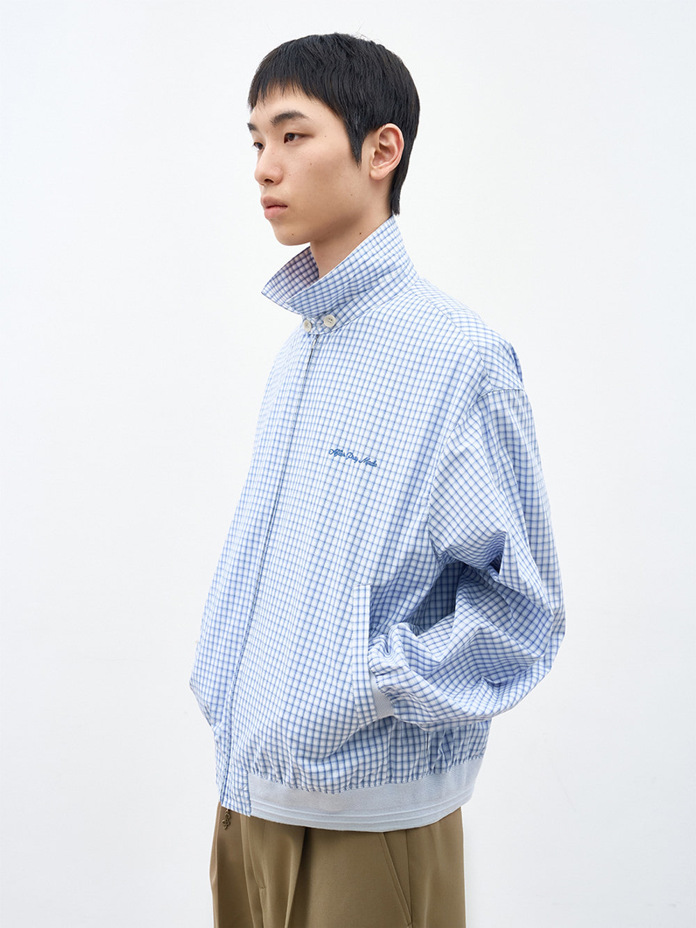 캐주얼한 무드로 즐기기 좋은 간절기용 코튼 스윙탑 블루종. 스윙탑 오리지널 디자인을 계승하여 카라 밴드가 자연스럽게 넘어오는 구조적인 디테일. 제품의 특성에 맞춰 독자적으로 개발한 시보리 짜임을 통해 구현한 안정적인 실루엣. 다양한 스타일링에 이질감 없이 녹아들어 세련된 조화를 이루는 잔체크 패턴의 미학. 전면 가슴부의 애프터프레이 레터링 자수로 스포티한 감성과 브랜드의 아이덴티티를 절제미 있게 담아낸 구성.