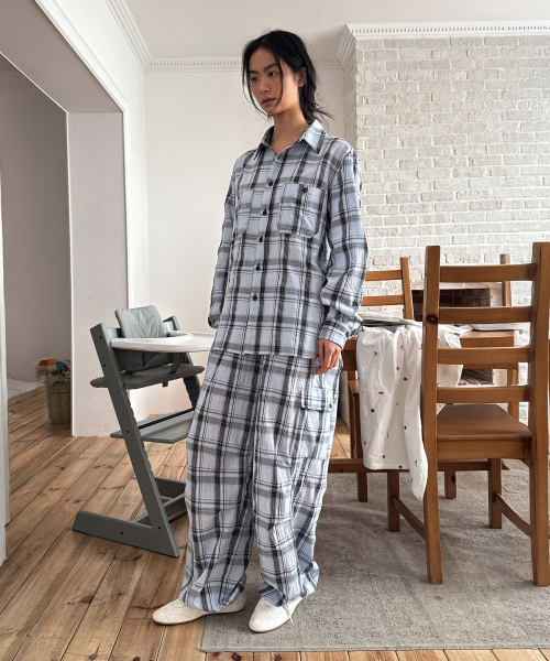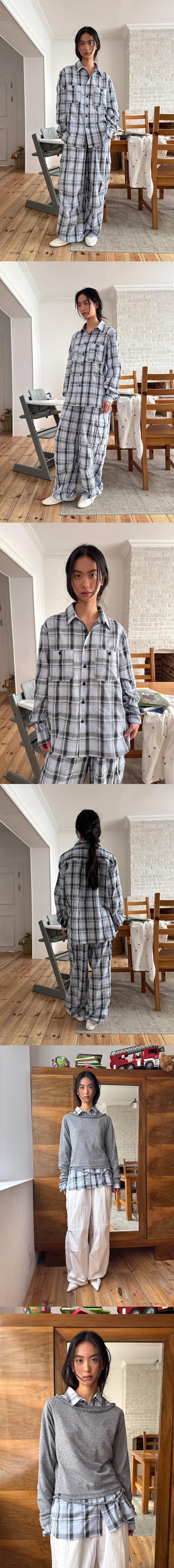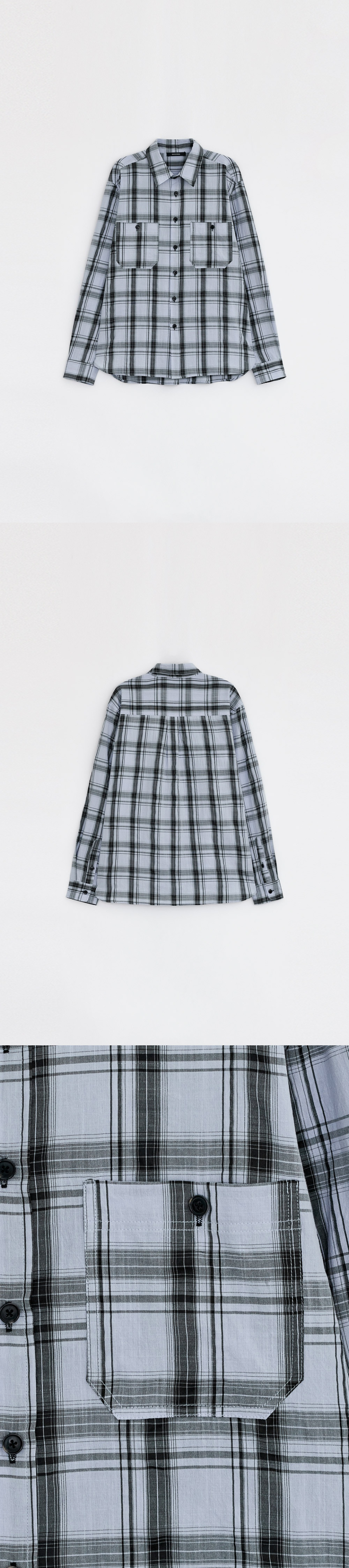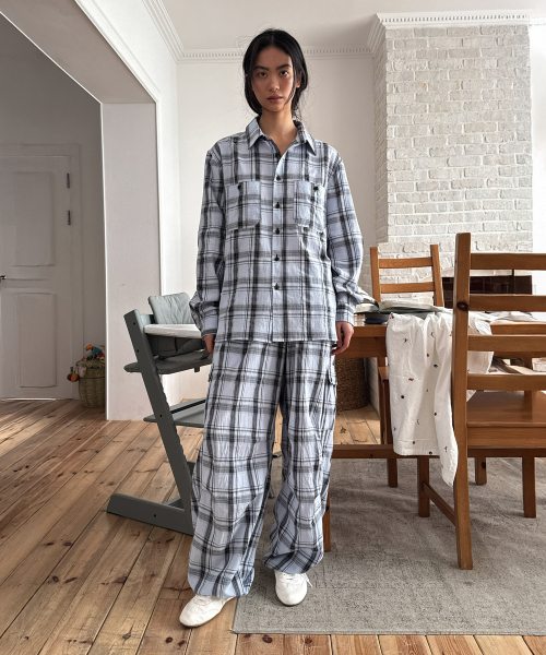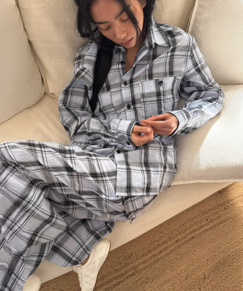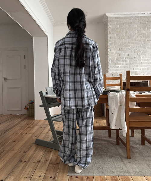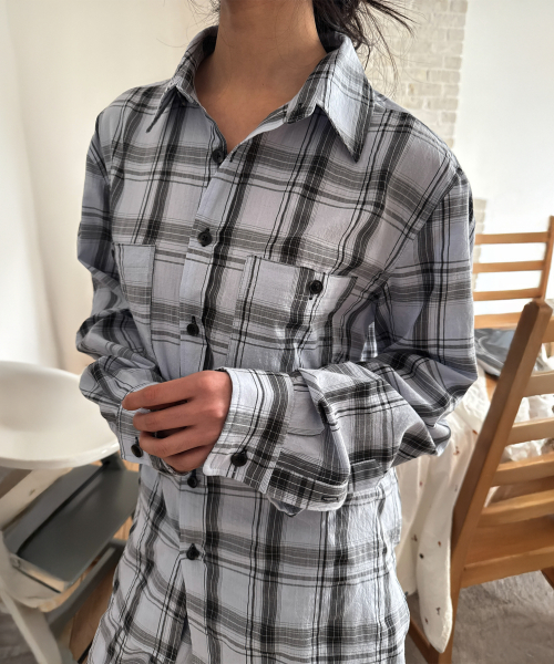 - 체크 패턴의 오버핏 셔츠.