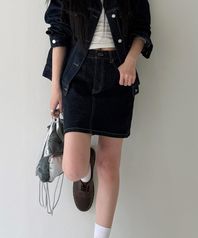 [KUROKI] CLASSIC DENIM MINI SKIRT_DARK BLUE