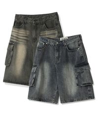 Wide Cargo Half Denim Pants WASHING - 3COL