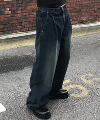 뒷밴딩 원턱 포인트 와이드 데님 팬츠[미드나잇 블루]