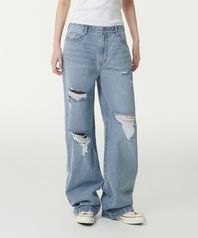 우먼즈 멀티 디스트로이드 와이드 데님 팬츠 [라이트 인디고]
