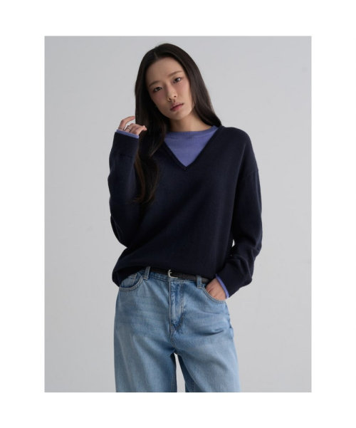 코디를 고민하지 않아도 되는 칼라배색이 트렌디한 브이넥 풀오버입니다. 적당히 여유있는 루즈핏과 간절기 착용하기 좋은 소재감으로 다양한 하의와 매치하기 좋습니다.