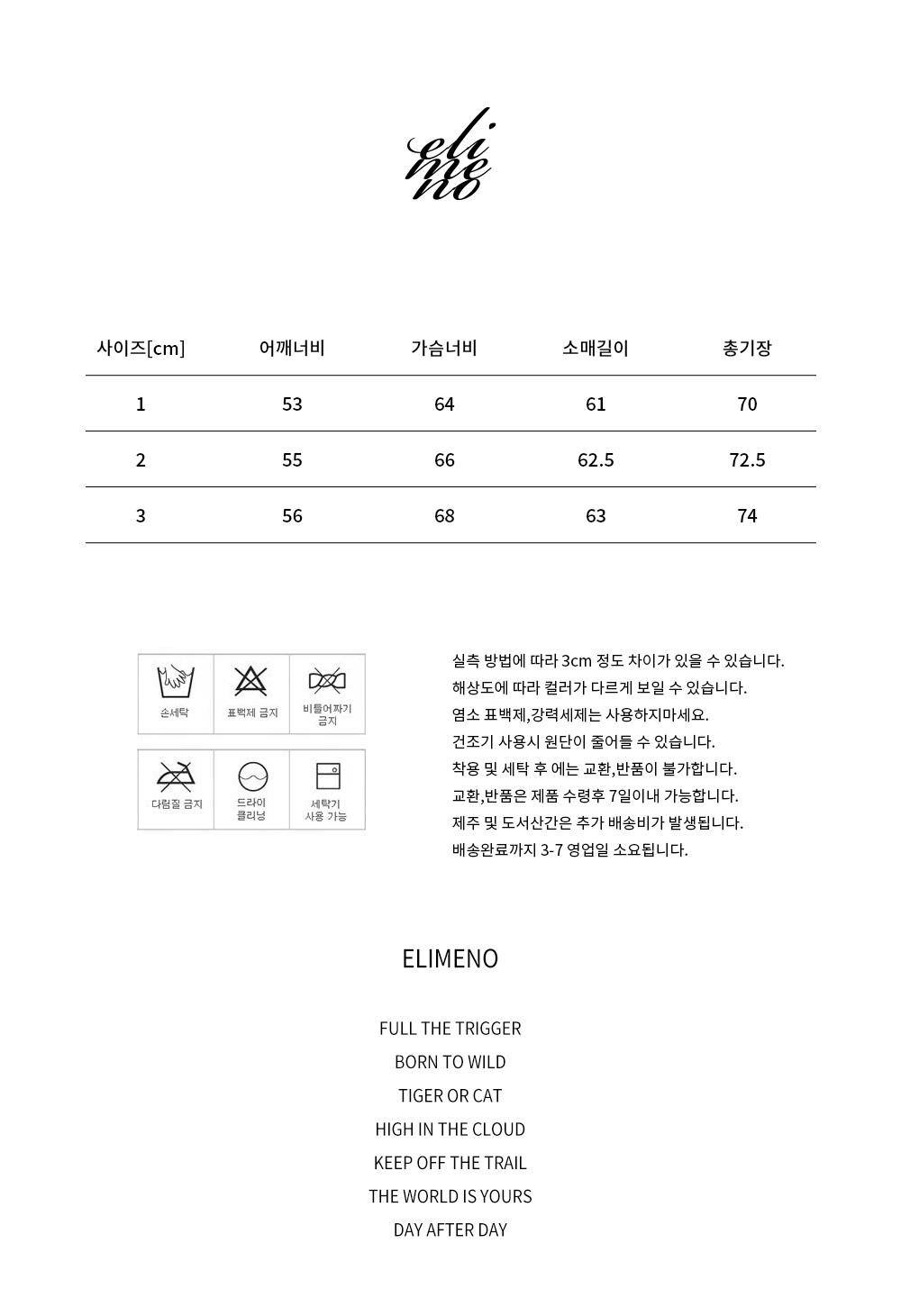 엘리메노(ELIMENO)는 반경 1.6Km 내 활동할 수 있는 패션을 콘셉트로, 스트릿 패션 웨어로 하이엔드보다는 베이식하고 대중적인 이미지를 추구하며, 놈코어 룩과 시티시크 룩을 지향하는 유니섹스 컨템포러리 브랜드입니다.