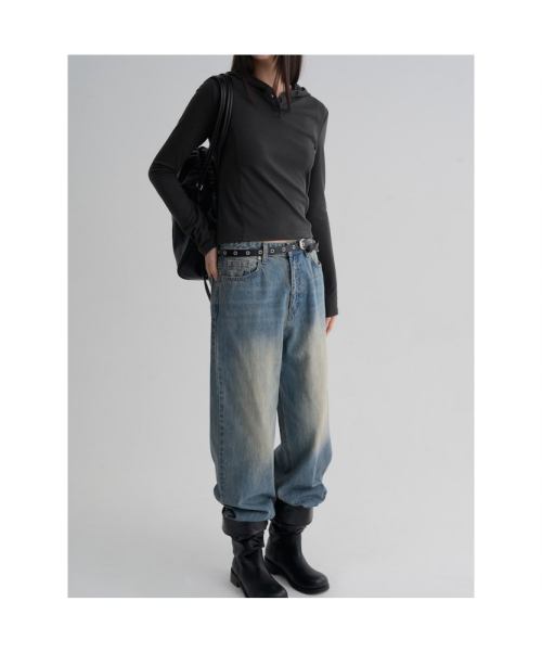 캐주얼한 워싱이 돋보이는 데님 팬츠입니다. 과하지 않은 여유의 세미 와이드 핏으로 자연스러운 실루엣을 보여줍니다. 간절기 다양한 상의와 매치해 활용하기 좋습니다