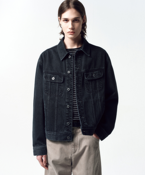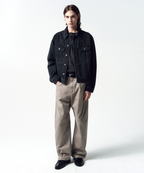9449 유니섹스 와이드 미디엄인디고 투버튼 데님팬츠