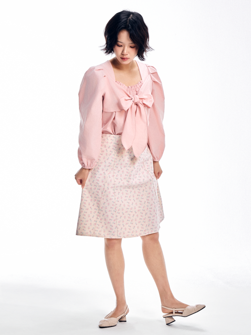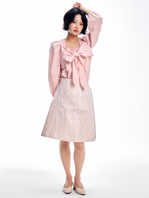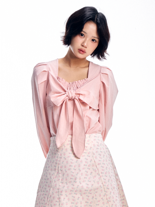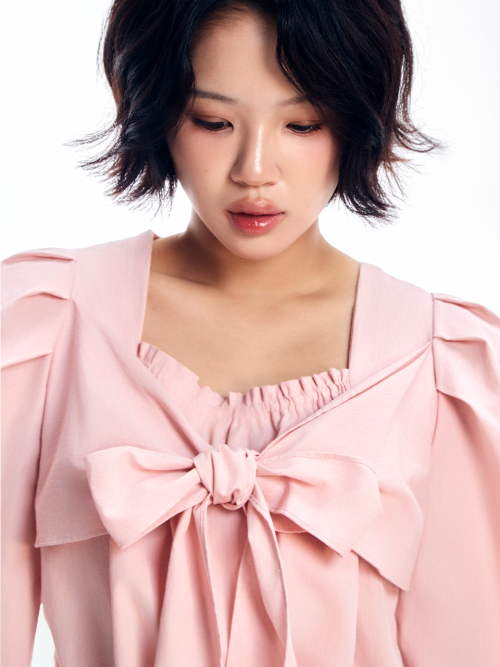 리본 타이 블라우스 - 핑크