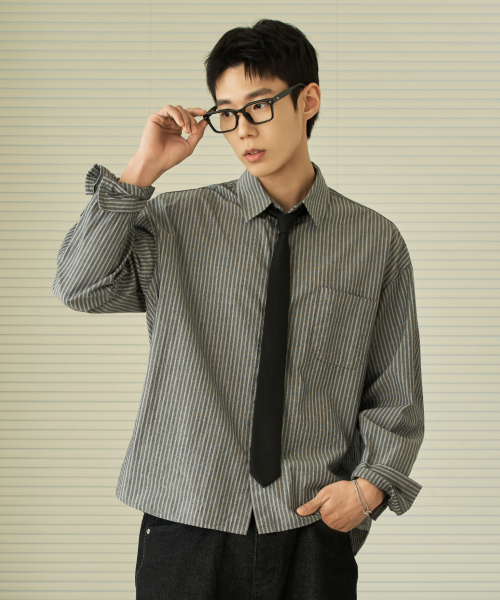 26 SS 세미 크롭 라이트웨이트 스트라이프 셔츠 (5컬러)