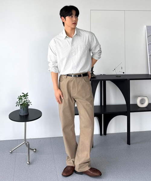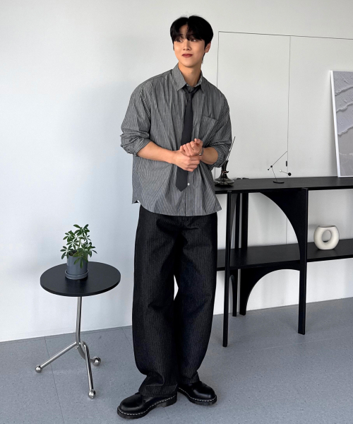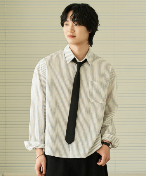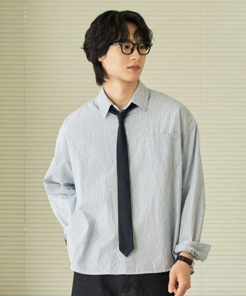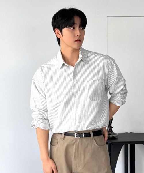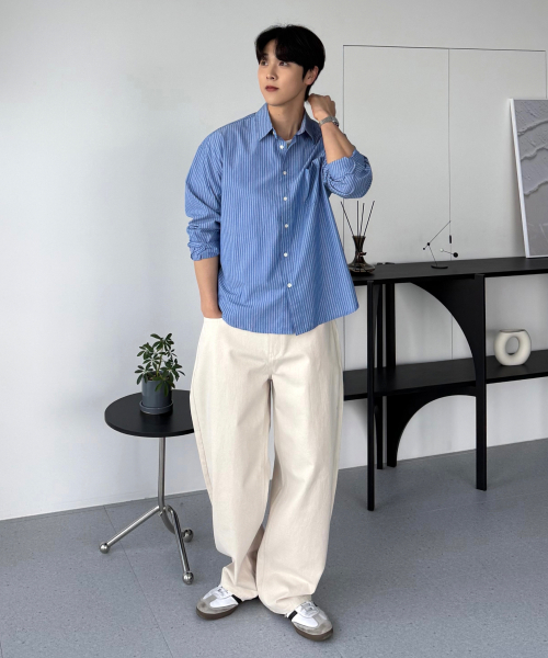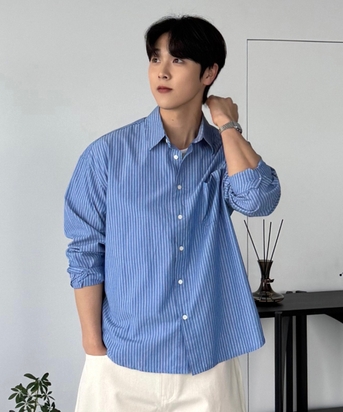 에센셜 옥스포드 크롭 스트라이프 셔츠_3color