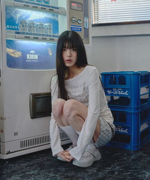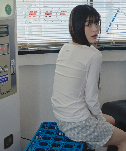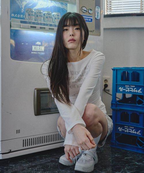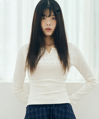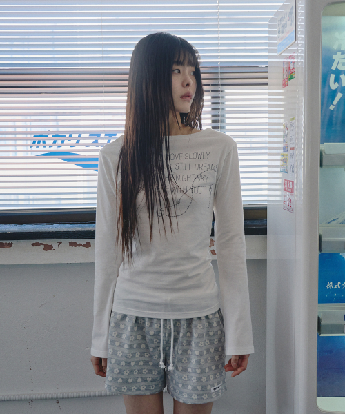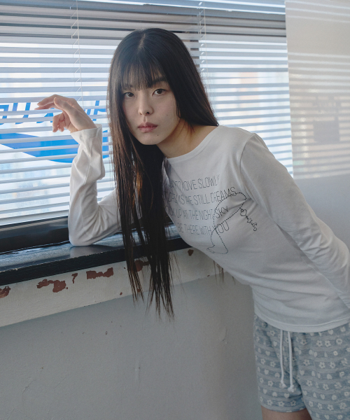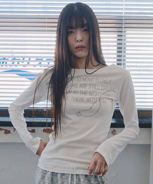 컷 넥 텍스트 프린트 롱슬리브 아이보리