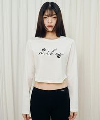 미헤브 립 그래픽 크롭 롱슬리브 화이트