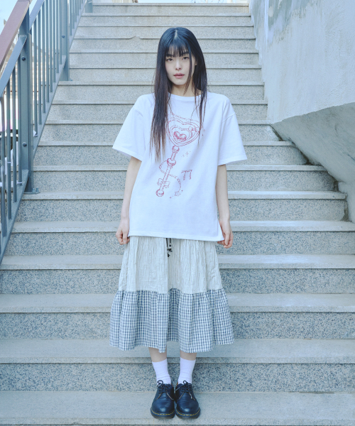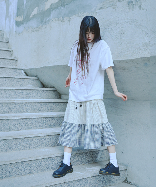 미유 러블리 참 오버핏 반팔 티셔츠 블랙