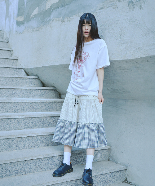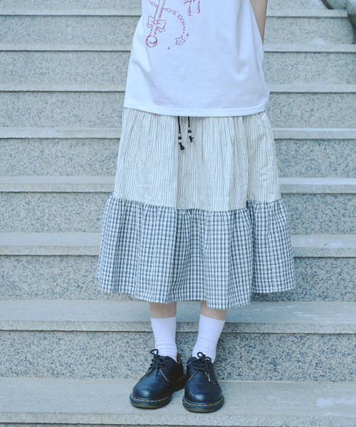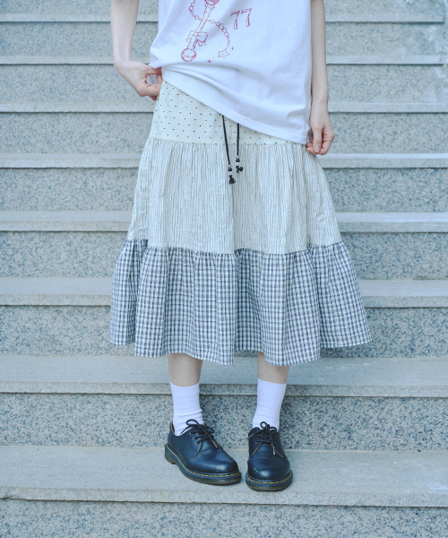 쓰리패턴 셔링 빈티지 스커트 아이보리