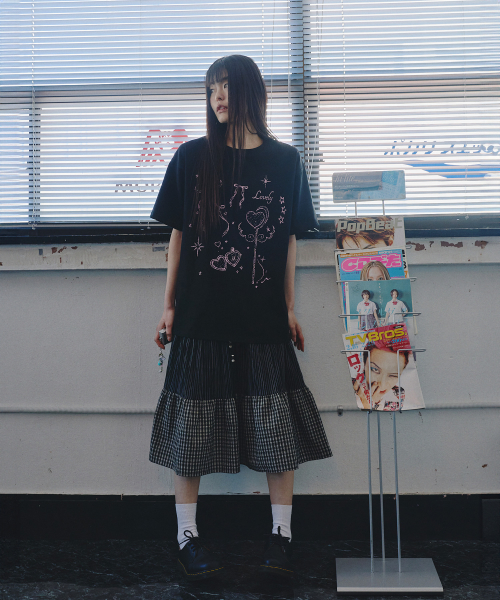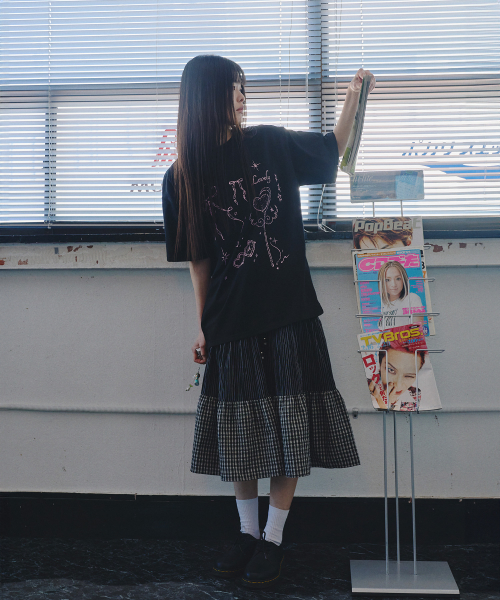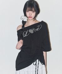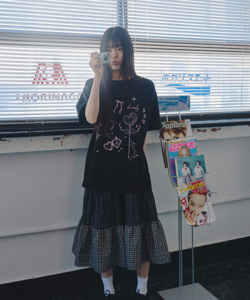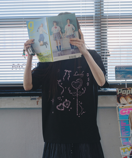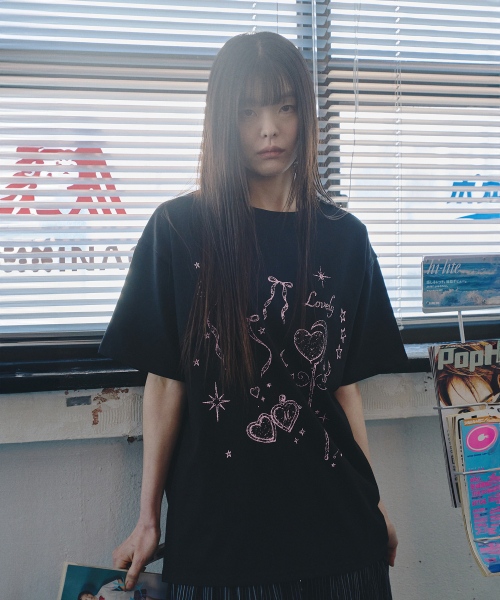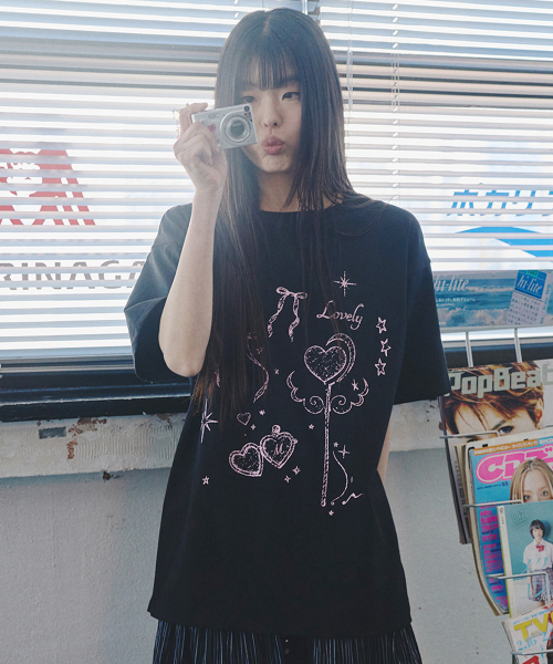 미유 러블리 참 오버핏 반팔 티셔츠 블랙