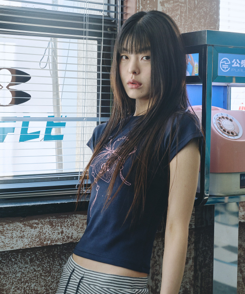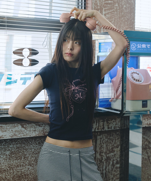 미헤브 그래픽 로고 크롭 티셔츠 블랙
