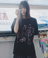 미유 러블리 참 오버핏 반팔 티셔츠 블랙