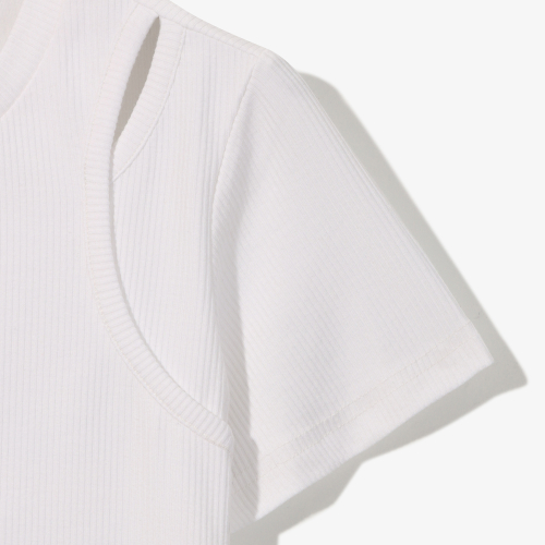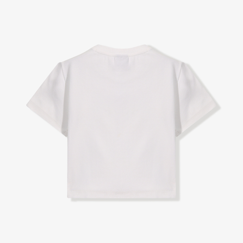 크롭 기장의 절개 포인트 티셔츠입니다.골 조직의 소재를 사용하여 소재 자체만으로도 포인트가 되는 스타일이며, 어깨트임이 포인트가 되어 댄스를 배우는 친구들에게 추천해주기 좋은 스타일입니다. 신축성이 좋아 착용 시 편안하게 착용 가능하며, 핏 되는 스타일로 세련된 룩을 선보일 수 있습니다.원포인트 모노톤 그래픽으로 고학년 친구들에게 추천이 가능합니다.