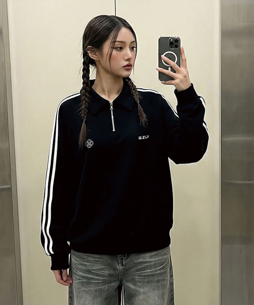 미니멀심볼 오버핏 트랙 카라반집업 맨투맨 2 Color [ULZM_8003]
