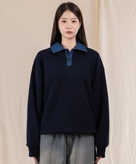 여성 쭈리 투버튼 데님 카라 오버핏 맨투맨 [네이비]