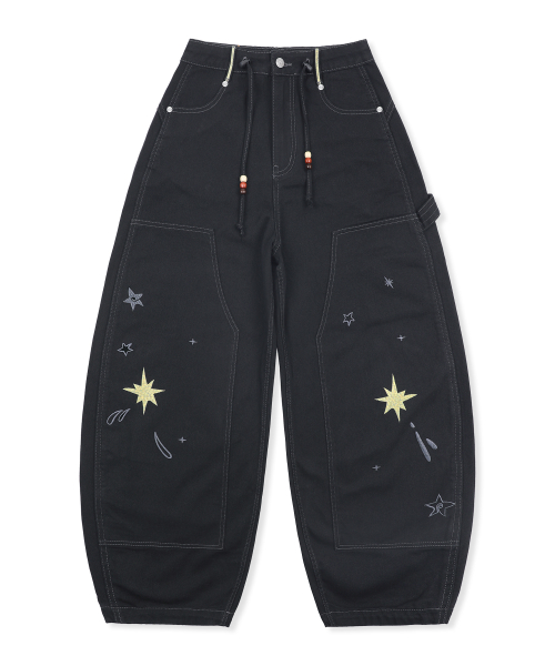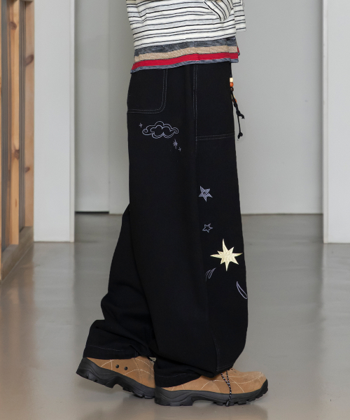 엔젤 아플리케 커브드 스웨트 팬츠[블랙]