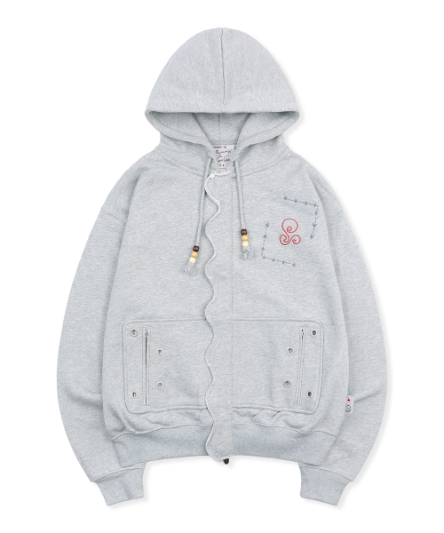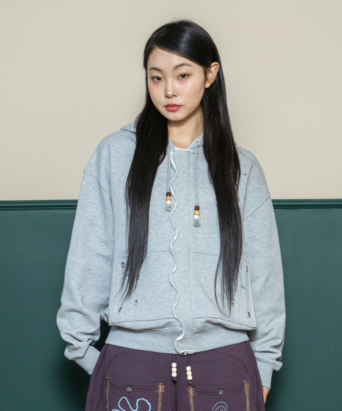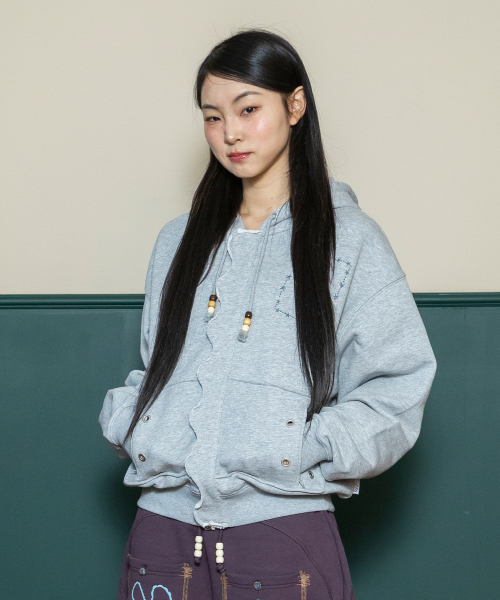 WXJ043 요하쿠 물결 아일렛 후드 집업 (MELANGE GRAY)