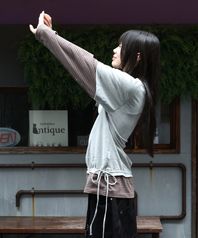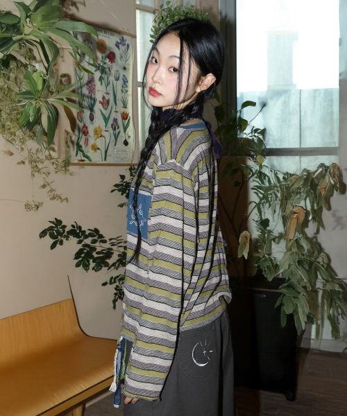 WXT070 모넬로 레이어드 스트라이프 롱슬리브 (MELANGE GRAY)