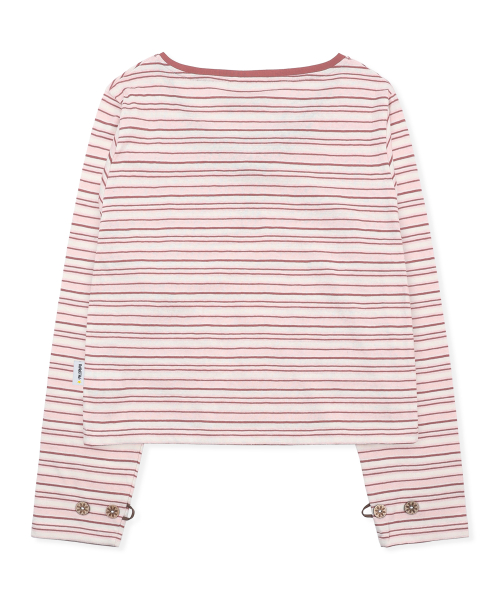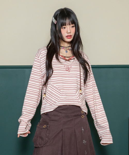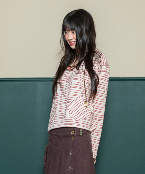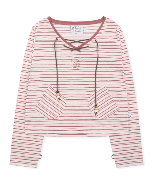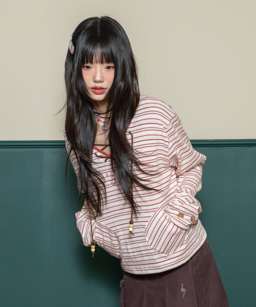 WXT084 나미 스트라이프 브이넥 롱슬리브 (PINK)