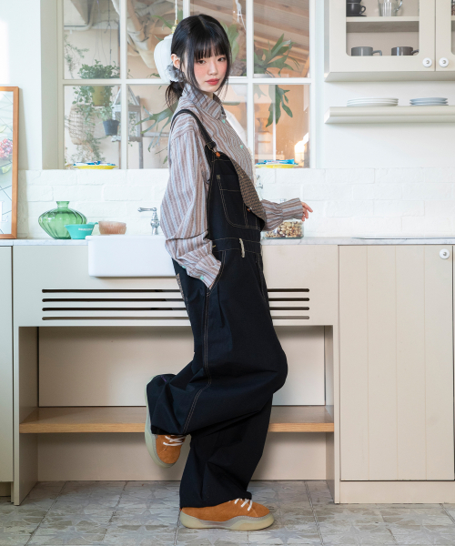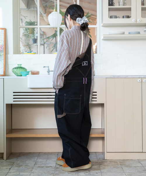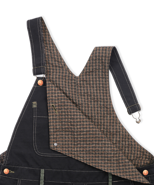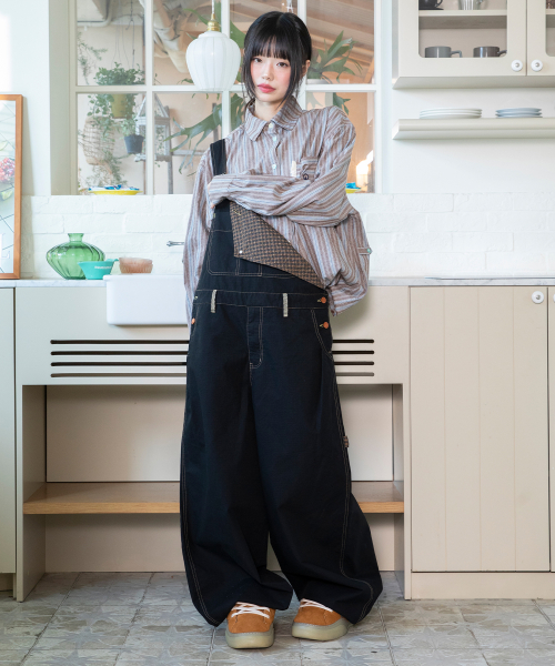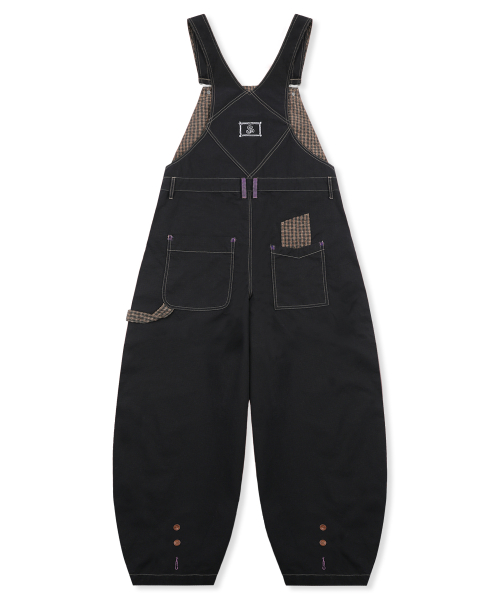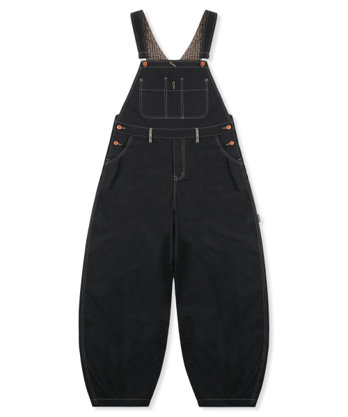 WXP079 토테토테 체크 배색 벌룬 오버롤 (BLACK)