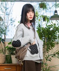 WXJ035 포슨 도트 배색 스웻 가디건 (MELANGE GRAY)