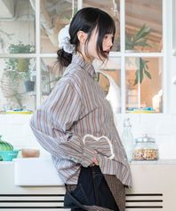 WXTS014 쿠모아시 스트라이프 셔츠 (BROWN)