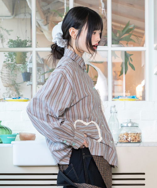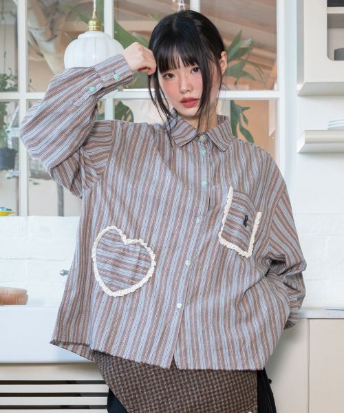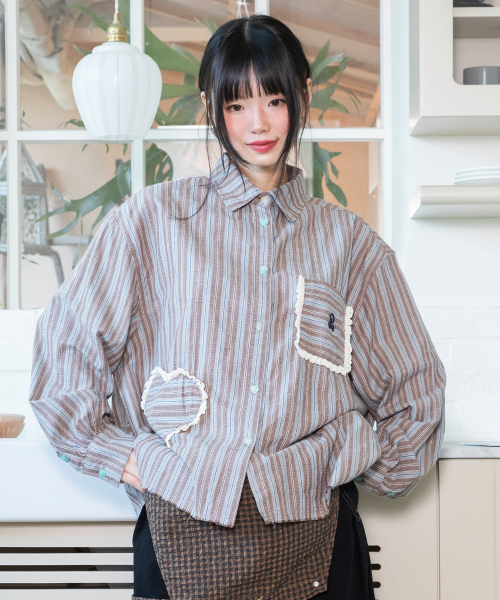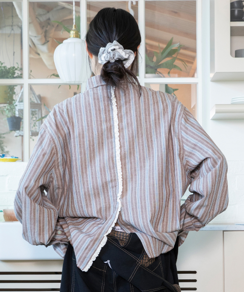 WXTS014 쿠모아시 스트라이프 셔츠 (BROWN)