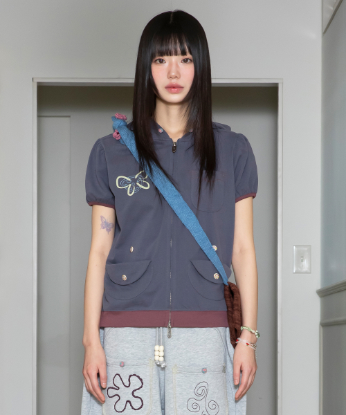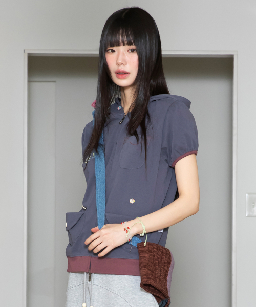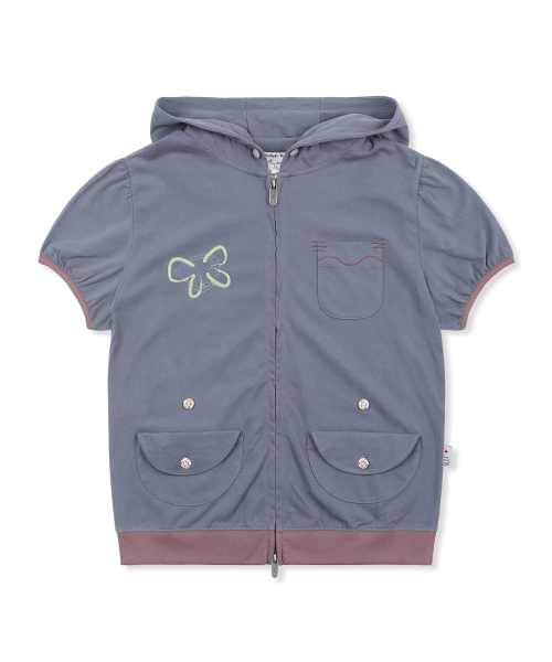 WXJ045 엉금이 스웻 반팔 후드 집업 (BLUE)