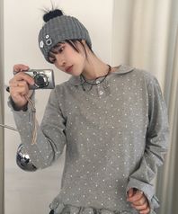 WXT072 유키 도트 PK 롱슬리브 (MELANGE GRAY)