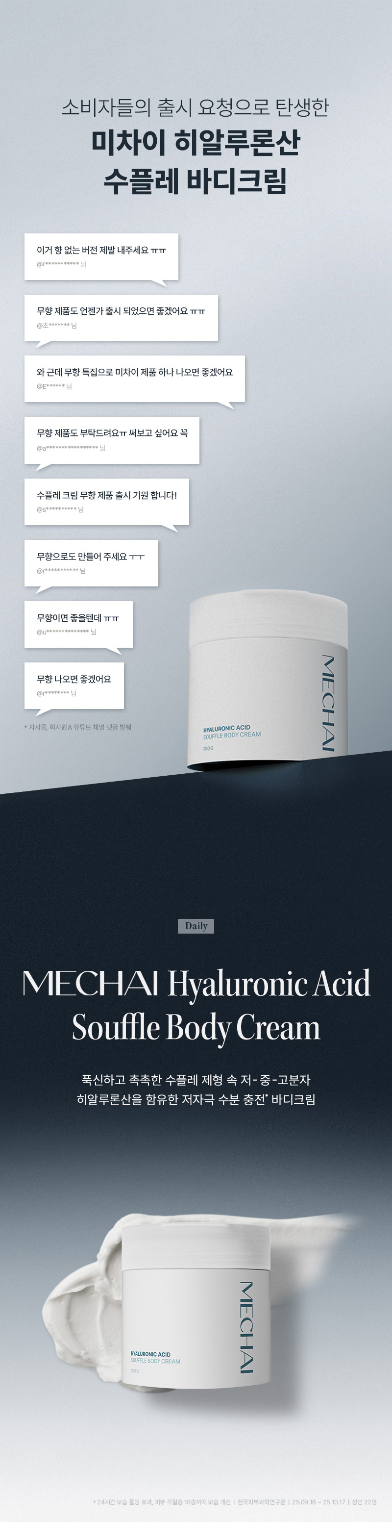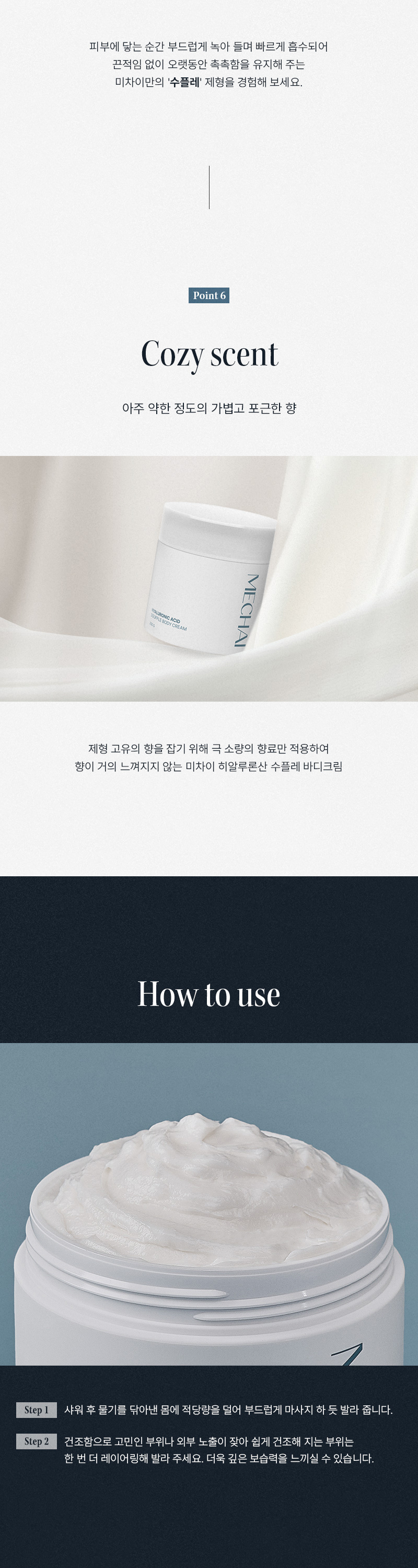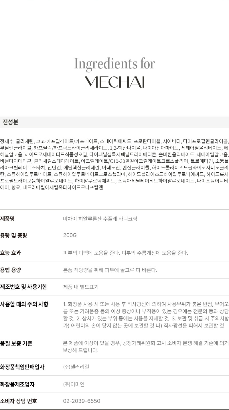 미차이(MECHAI)는 문제성 피부를 위한 바디 케어 브랜드입니다. 고기능, 고효능의 원료에 감각적인 즐거움을 더함은 물론 문제성 피부를 효과적으로 솔루션하기 위한 방법과 루틴을 제안하기 위해 끊임없이 연구하고 고민합니다.