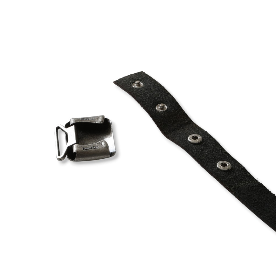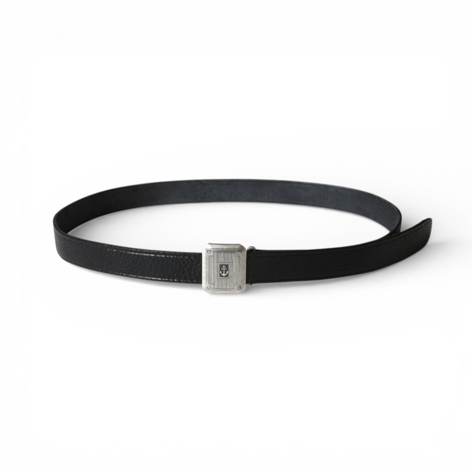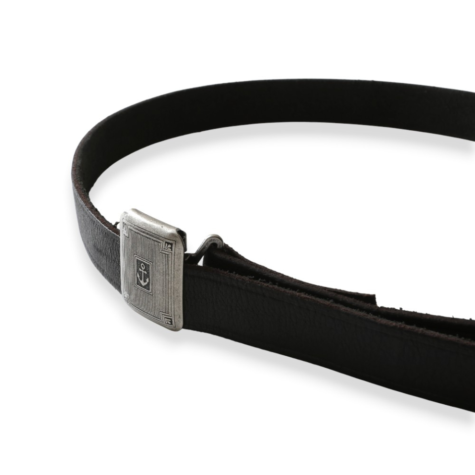 빈티지한 스퀘어 앵커 버클과 자연스러운 그레인 텍스처 가죽이 어우러져 클래식한 포인트를 더해주는 데일리한 레더 벨트입니다. 시간이 흐를수록 자연스럽게 에이징되는 고급스러운 이탈리안 베지터블 태닝 가죽 사용 - 적당히 두께감 있는 스트랩, 묵직한 느낌의 니켈+황동 조합의 버클과 스냅 디테일 - 워크웨어와 데님에는 빈티지하게, 슬랙스와는 클래식한 무드로 연출 - 쉽게 탈부착되는 스퀘어 버클로 사이즈 조절 및 허리띠 교체 가능
