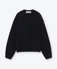 [UNISEX] LAYERED STITCHED CREW NECK KNIT (BLACK)