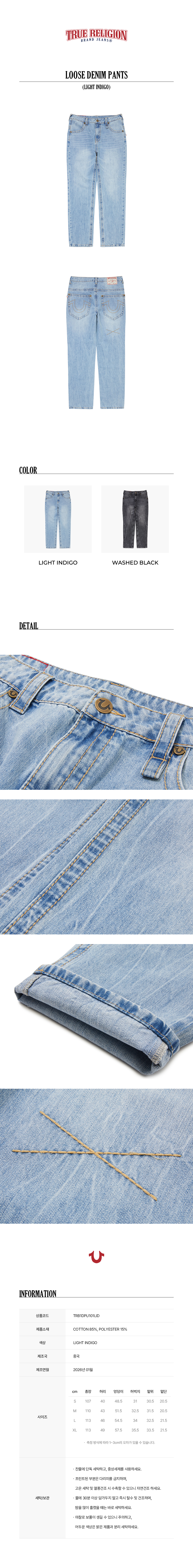 트루릴리젼(TRUERELIGION)은 2002년 미국에서 설립된 프리미엄 데님 브랜드입니다. Big-T, Super-T로 대표되는 스티치와 더불어 높은 퀄리티의 핏과 완성도를 지향합니다.