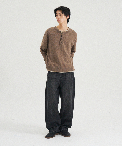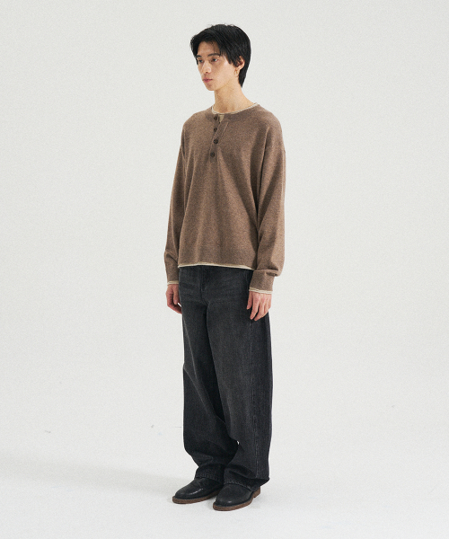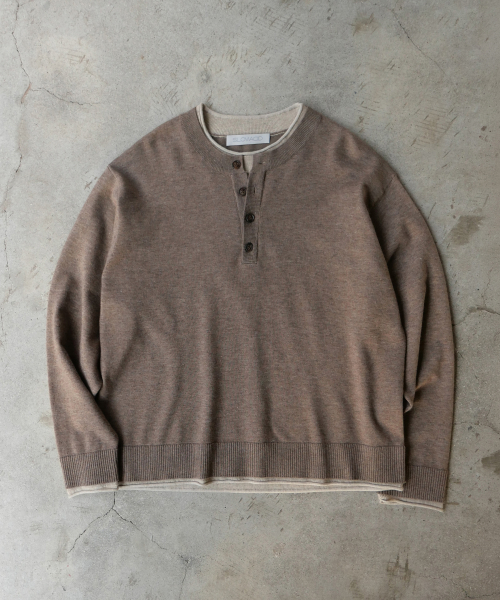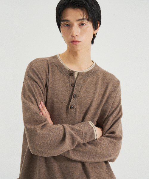 레이어드 헨리넥 니트 [브라운]