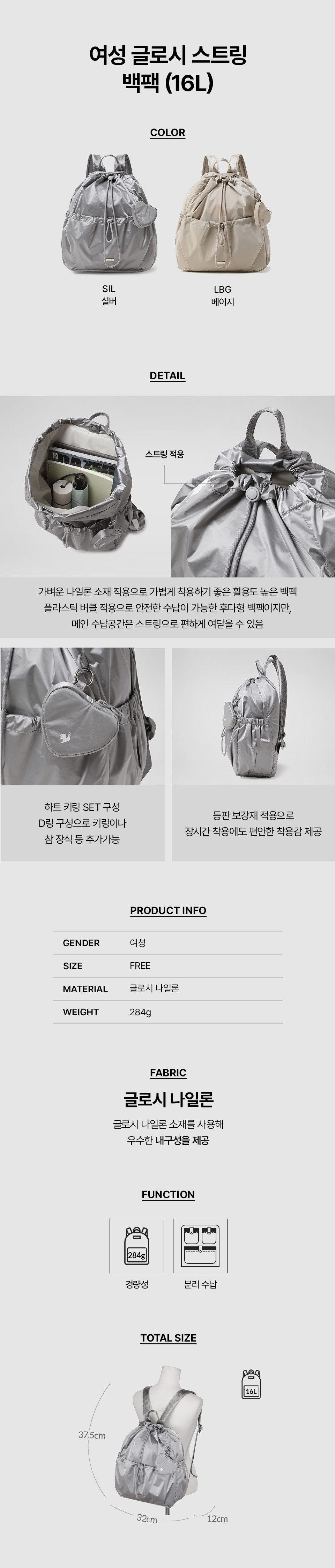 | 소재 | [LBG0]겉감:나일론(100),[LBG0]안감:폴리에스터(100),[SIL0]겉감:나일론(100),[SIL0]안감:폴리에스터(100) (입고 시기에 따라 정보가 상이할 수 있어, 수령하신 상품의 라벨을 참고하시기 바랍니다.) |