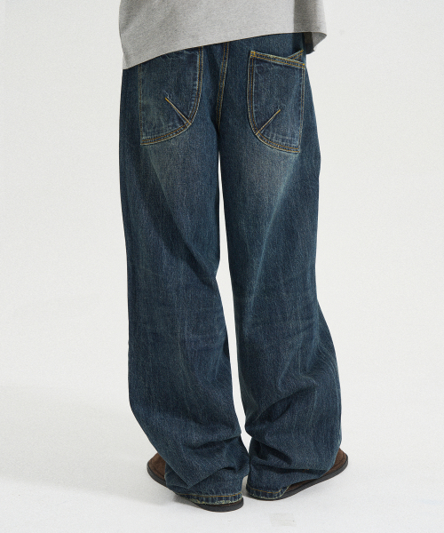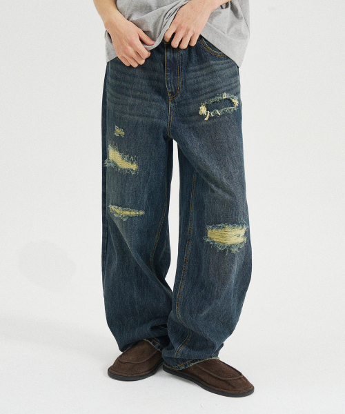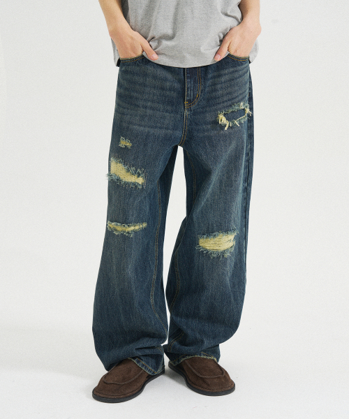 빈티지 리페어 디스트레스드 데님팬츠 [블루]