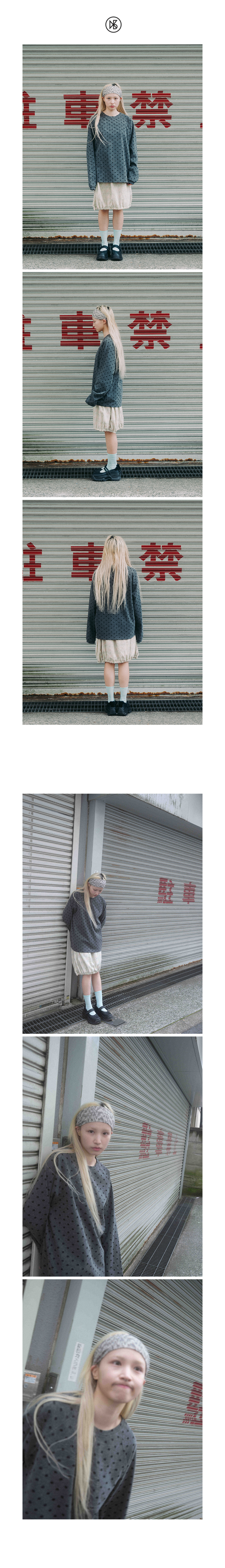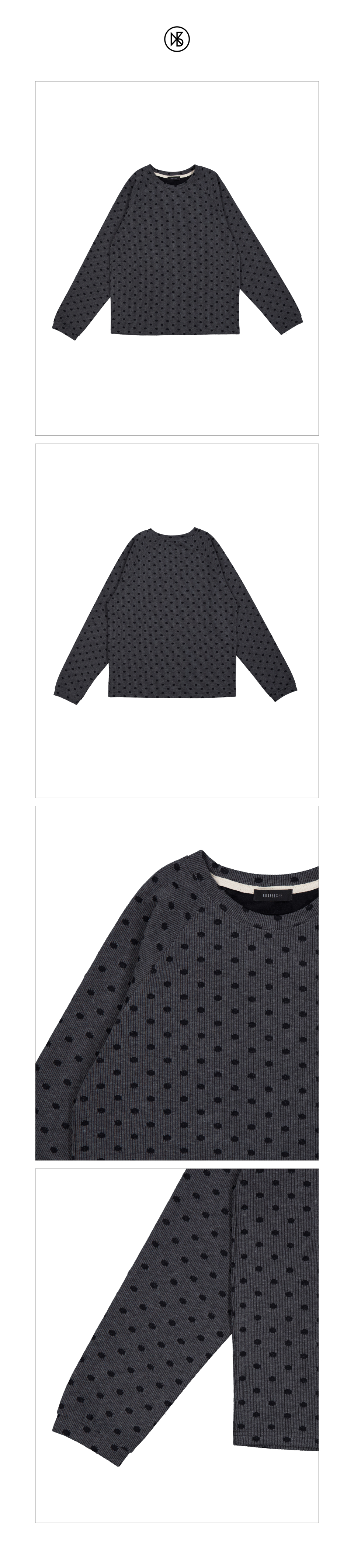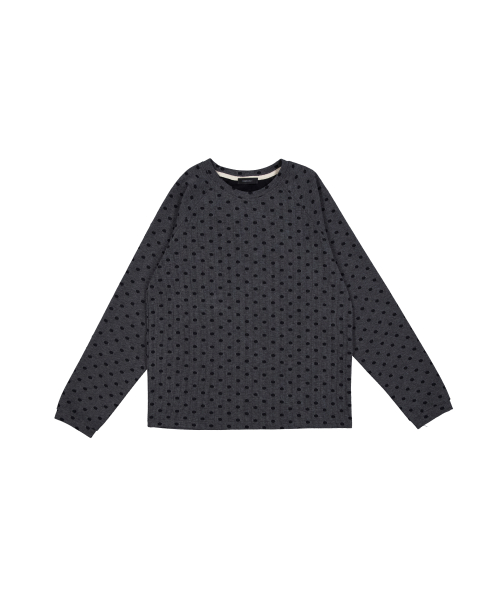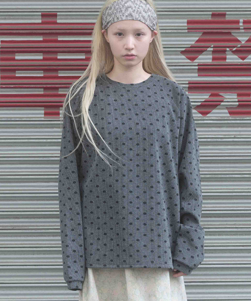 -도트 자가드 골지 조직의 래글런 티셔츠